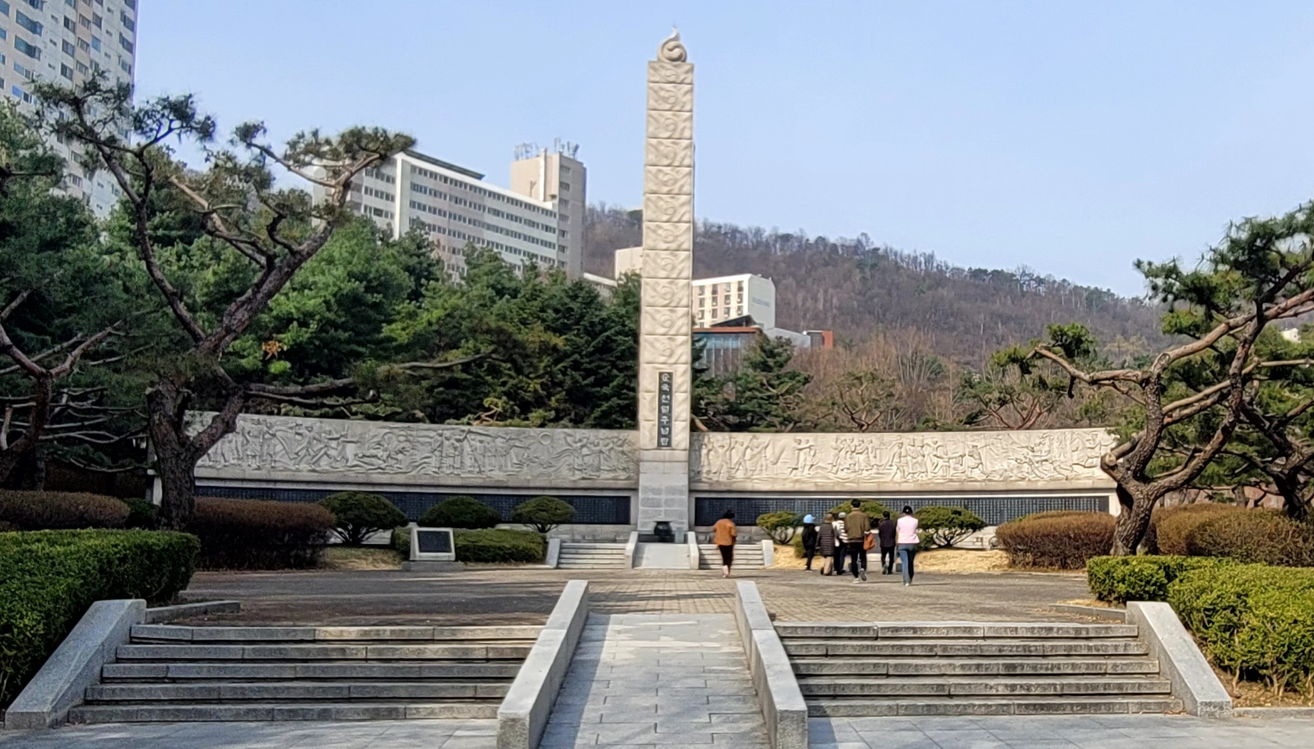 순국선열추념탑 아래에는 의병들의 항쟁모습을 그린 부조가 있었고 그 아래는 박영석 국사편집위원장 글이 있었다 시간을 내어 찬찬히 읽어내려가며 당시 나라를 지키려는 선열들의 심정이 절절히 전해져온다. 외국인 관광객도 읽을 수 있도록 번역본도 배치하면 좋겠다는 생각을 했다.
