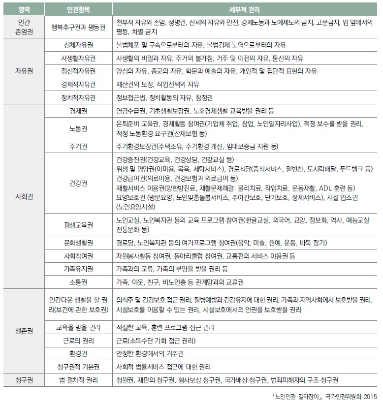 노인 인권의 영역과 세부적 권리